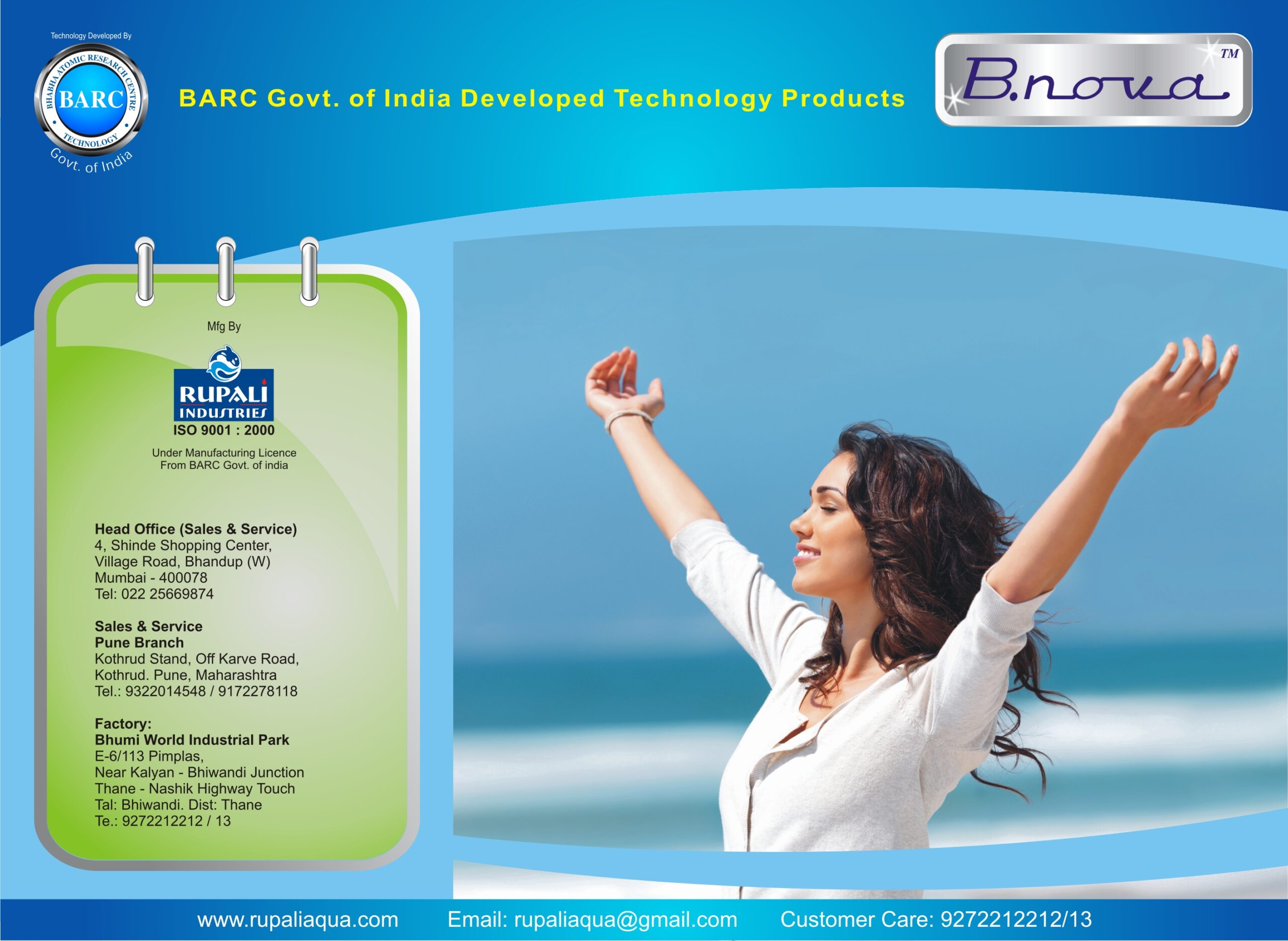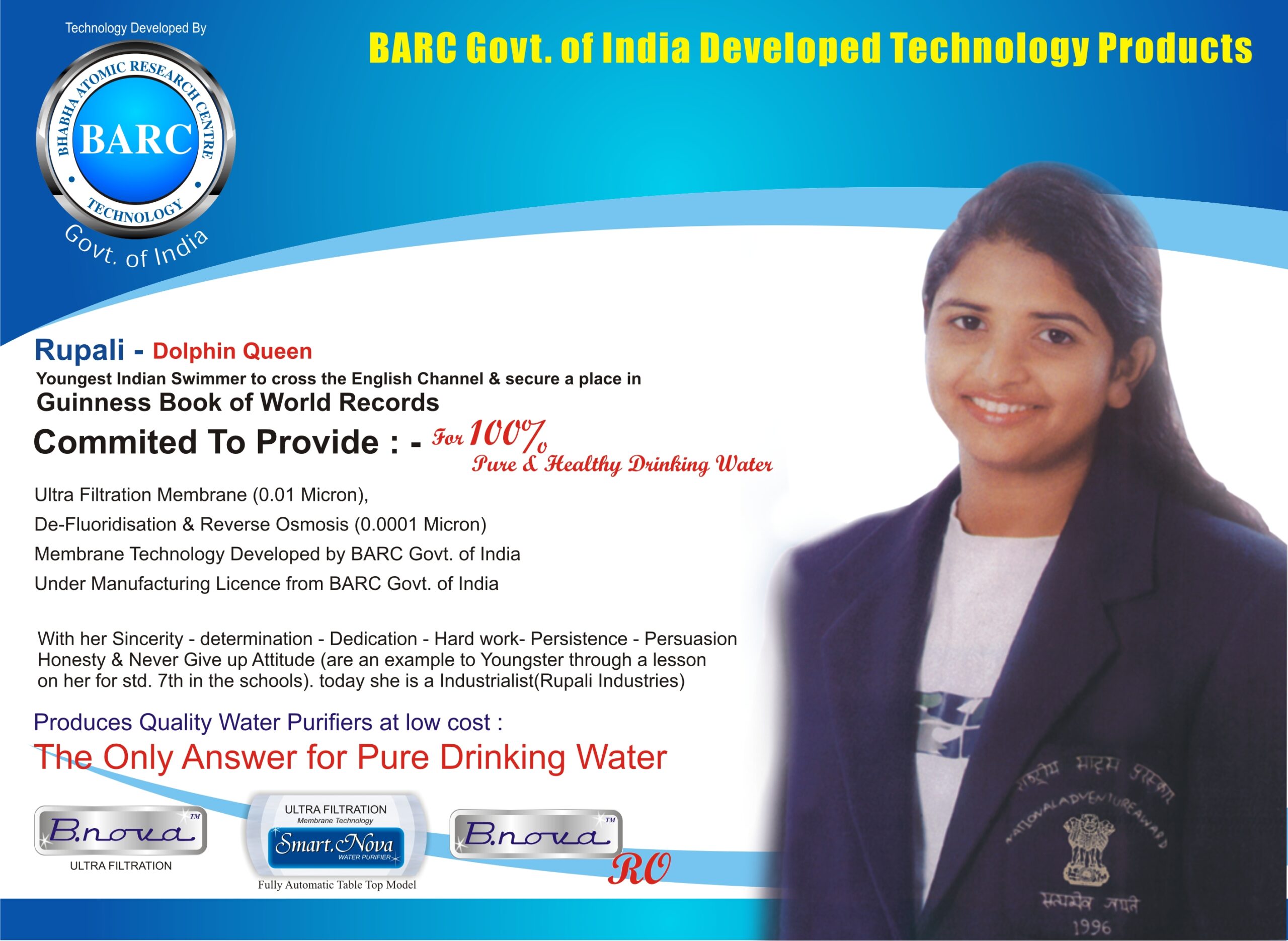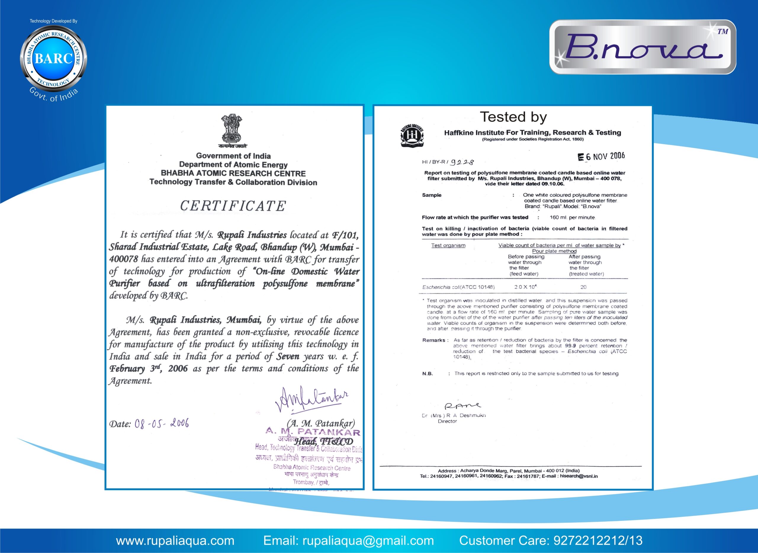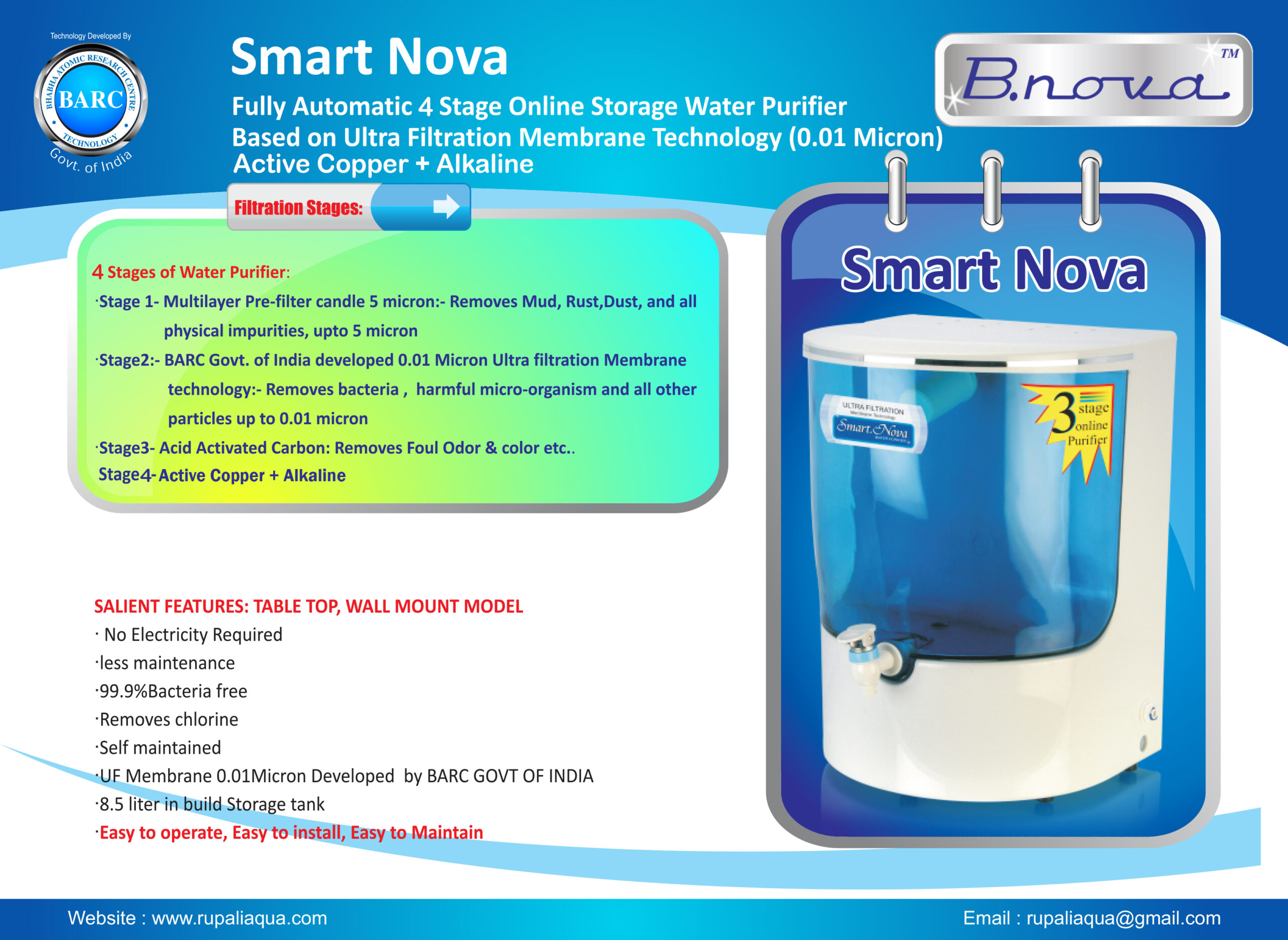 Based on Ultra Filtration Membrane Technology 0.01 Micron developed by BARC Govt. of India